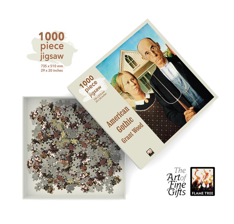 Fait partie d'une série passionnante de puzzles robustes de 1000 pièces en boîte carrée de Flame Tree, mettant en vedette des œuvres d'art puissantes et populaires. Ce nouveau puzzle satisfera votre besoin de défi, avec un chef-d'œuvre de l'art américain moderne, American Gothic de Grant Wood. Ce puzzle de 1000 pièces est destiné aux adultes et aux enfants de plus de 13 ans. Ne convient pas aux enfants de moins de 3 ans en raison de petites pièces. Taille du puzzle fini 735 x 510 mm/29 x 20 pouces. Comprend désormais une affiche A4 pour référence .