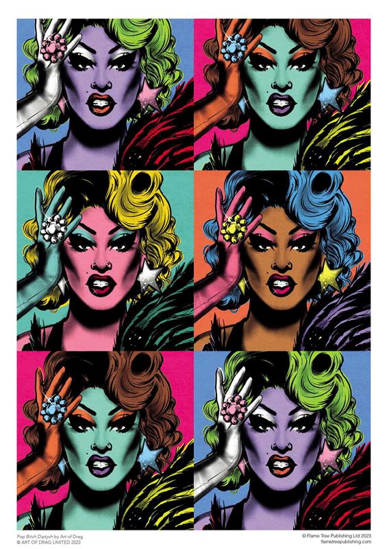Con drag queen, vous êtes maintenant prête à ajouter un peu de zhuzh supplémentaire à votre journée avec Art of Drag ! Les œuvres originales d'Art of Drag présentent de magnifiques Drag Queens (ou Kings !) et sont saupoudrées de fabulosité supplémentaire et d'une touche d'élégance ! Créées par une maison d'art indépendante primée composée d'artistes LGBTQ+ et de leurs alliés, leur réinvention de l'art emblématique s'étend de la Renaissance au street-art et tout ce qui se trouve entre les deux. Nous vous proposons un art unique, provocateur et glamour... et comme les reines elles-mêmes, chacune d'entre elles est un CHEF-D'ŒUVRE ! La couverture de ce livre présente l'œuvre d'art Pop Bitch Diptych .