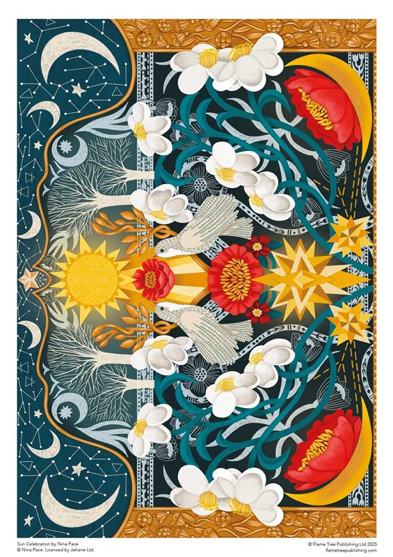 Part of a new, exciting series of ethical, sustainable and earth-friendly jigsaw puzzles that feature powerful and popular works of art. This high-quality, 1000-piece jigsaw puzzle from Flame Tree is made with all FSC-certified paper, board and bag, with sturdy pieces and no shrink-wrap. The 1000 pieces will satisfy your need for a challenge, with the wonderful Sun Celebration illustration by Nina Pace. Intended for adults and children over 13 years. Not suitable for children under 3 years due to small parts. Includes an A4 poster for reference. Finished Jigsaw size: 735 x 510mm / 29 x 20 ins.