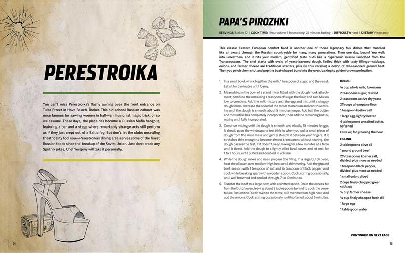 Whether you're planning your next heist or running from the law with five stars, you gotta eat. From gritty safehouse to luxury penthouse, the Grand Theft Auto universe spans the entire spectrum of the American Dream. To celebrate that diversity, this cookbook runs the gamut from food cart and backstreet diner delicacies to refined, epicurean dishes fit for any capo of a sprawling criminal empire.