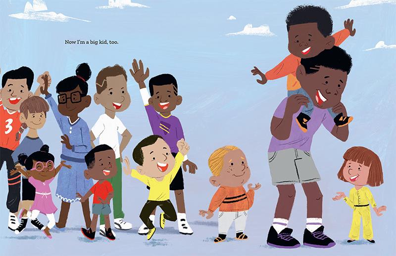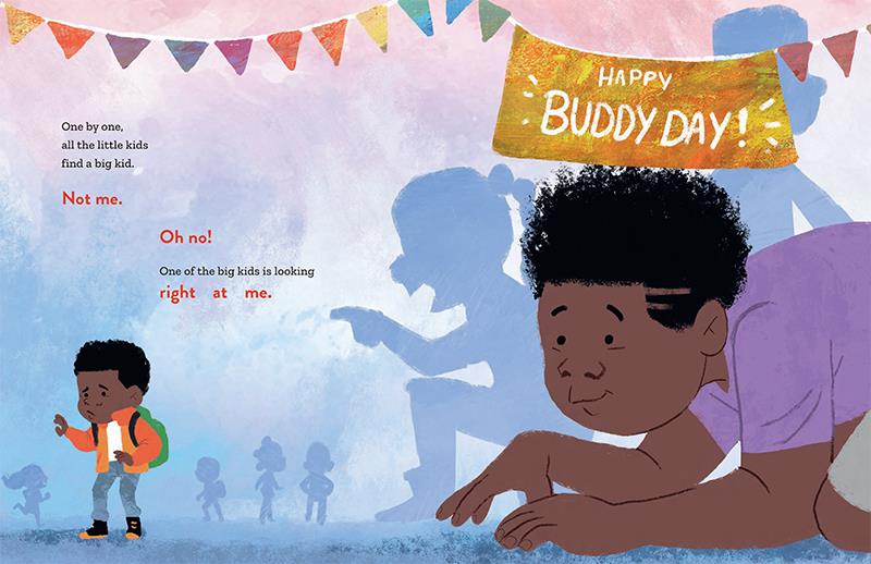 It’s the first day of school and everywhere our small hero looks there are big kids! Big kids are shouting, playing, and high-fiving each other. Big kids are crowding the halls and hanging out on the playground. It all feels a bit overwhelming. And since it’s Buddy Day, the big kids are pairing off with little kids. But maybe having a big buddy won’t be so bad—he shows him where to find his classroom and where to hang his coat. He even uses his big kid arms to reach the chocolate pudding! Maybe big kids aren't so scary after all?