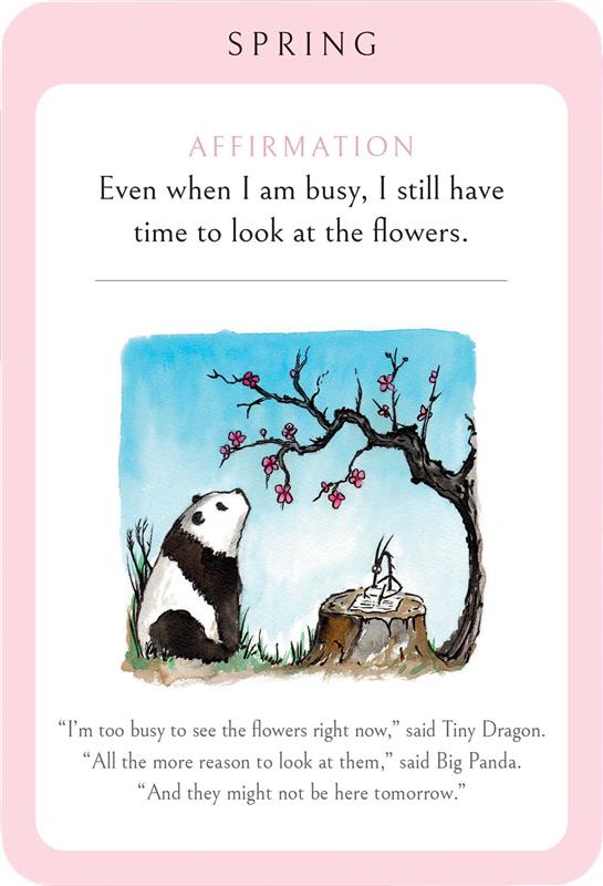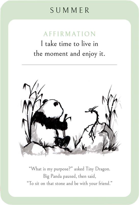 Big Panda and Tiny Dragon, the charming friends at the heart of the internationally bestselling series, travel through the changing seasons, learning how to live in the moment, make peace with uncertainty, and find the strength to overcome life’s obstacles together. Inspired by Buddhist philosophy and drawing from the wit and wisdom of the Big Panda and Tiny Dragon book, each affirmation card provides a profound thought that you can recite as a mantra, display around your home, or take with you on the go.