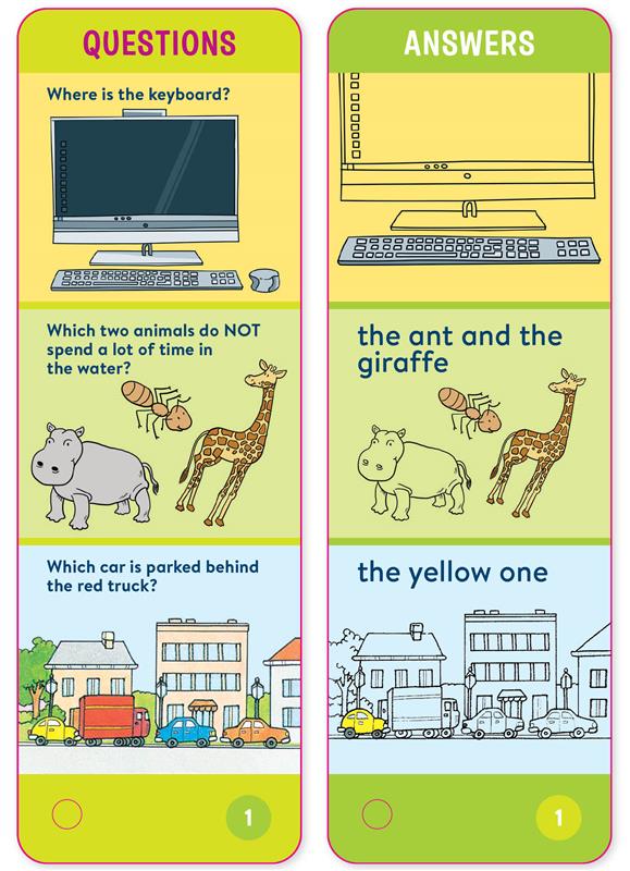 - Deux jeux de questions-réponses en couleur dans une boîte de rangement à rabat réutilisable