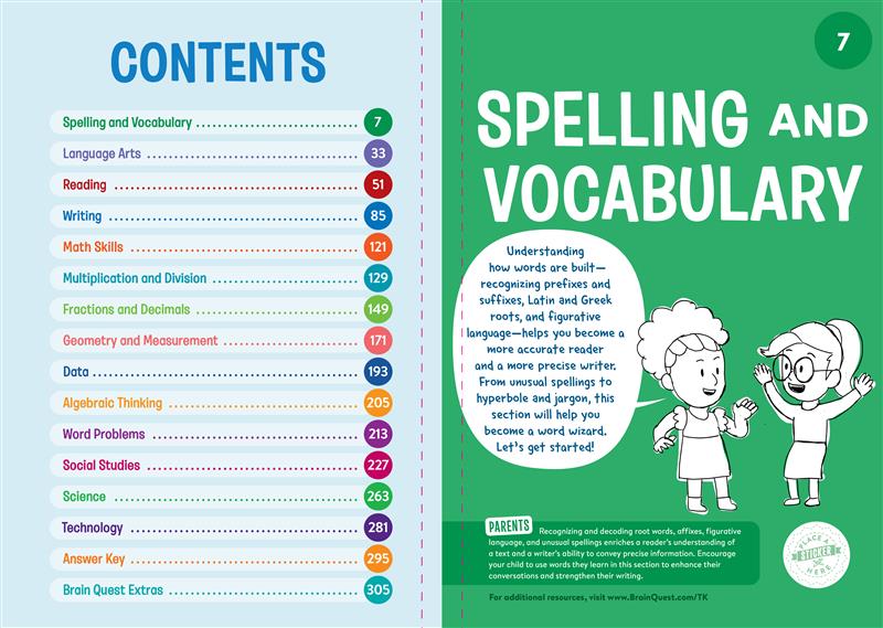 Loved by kids, teacher approved, and trusted by parents, Brain Quest Grade 5 Workbook reviews and reinforces what children are learning in the classroom in an instantly engaging, entertaining way. Each page is jam packed with fun activities, practice exercises, and games covering vocabulary, language arts, math word problems, multiplication and division, fractions and decimals, geometry and measurement, social studies, science, and much more.