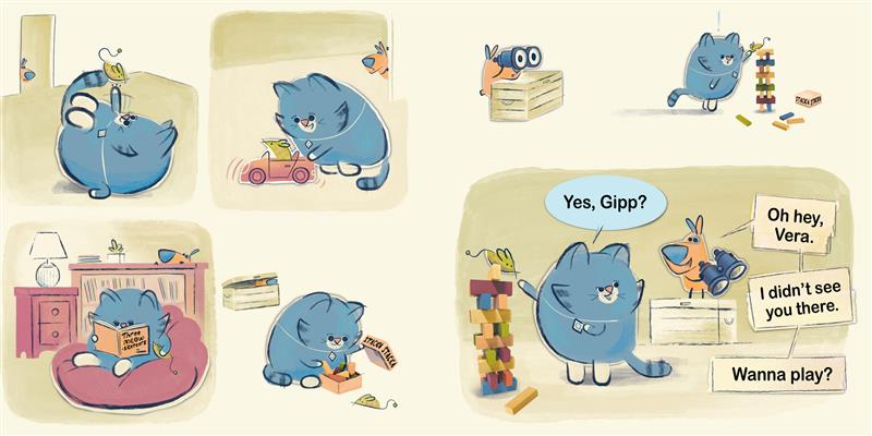 Vera (the cat) is happily playing alone with her catnip mouse when Gipp (the dog) desperately tries to join the fun. When she doesn't respond, Gipp decides he'll impress her with his magic wand but instead accidentally destroys Vera's toy! Attempting to cheer her up, Gipp offers to use his wand to replace the catnip mouse, suggesting a series of fantastical rhyming alternatives. Would Vera like a ketchup joust? No. A cattle blouse? No! How about a cactus house? NO! Vera's had enough. And soon neither of them has their favorite toy. Is there some way the friends can patch things up?