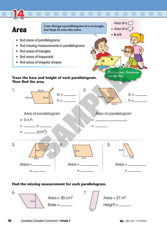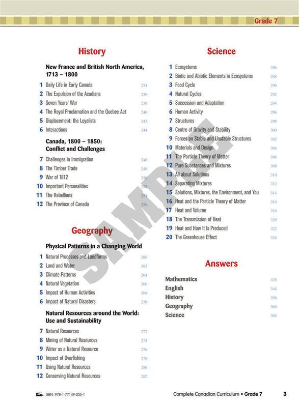 À l'intérieur du cahier d'exercices complet du programme d'études canadien de 7e année :
