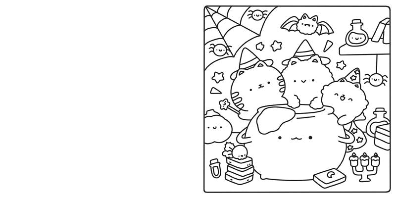 Color adorable ghosts, pumpkins, witches, bats, and more in the Kawaii style! Illustrator Becky Cas (@beckycas_) presents 80 cozily spooky coloring pages to make your own. Relax and unleash your creativity with Cute and Cozy Coloring: Spooky.