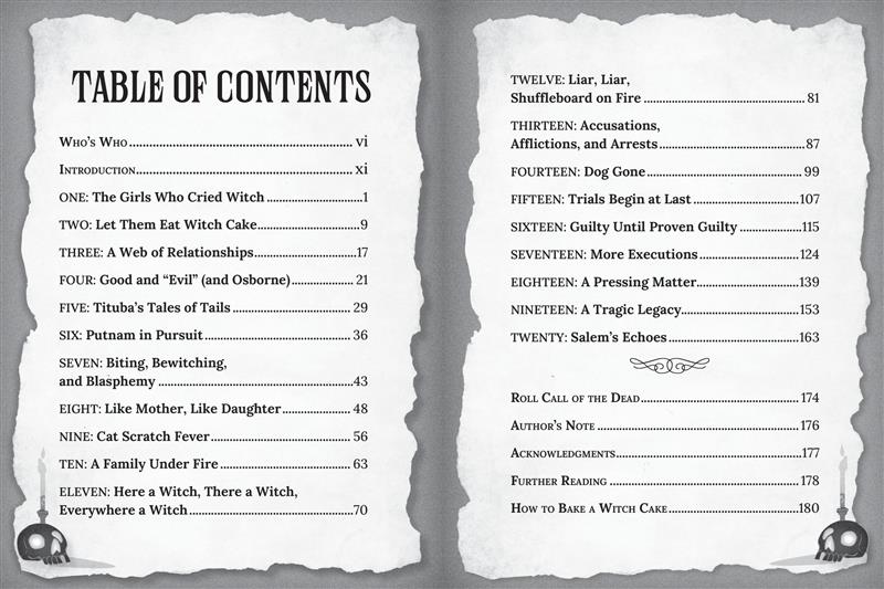But who were the witches? Everyone knew that too: the unprotected residents of Salem—the poor, the elderly, the ones who were a little bit strange. Soon more girls were having fits and naming people as witches. The village erupted in accusations, suspicion, and fear. By the time the witch trials ended, dozens of lives had been ruined, and twenty people were dead.