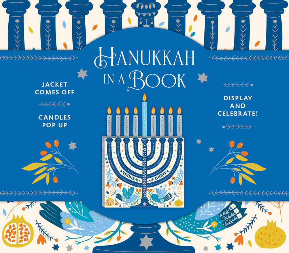Celebrate the eight days of Hanukkah with a unique book that transforms into a menorah to display on a desk, table, or windowsill. The pages feature traditional prayers in Hebrew and English, and a retelling of the history of Hanukkah, along with pop-up candles that you can turn up each night of the holiday. Simply take the jacket off, pop up the candles, and turn Hanukkah in a Book into a fully “lit” menorah—no matches required!