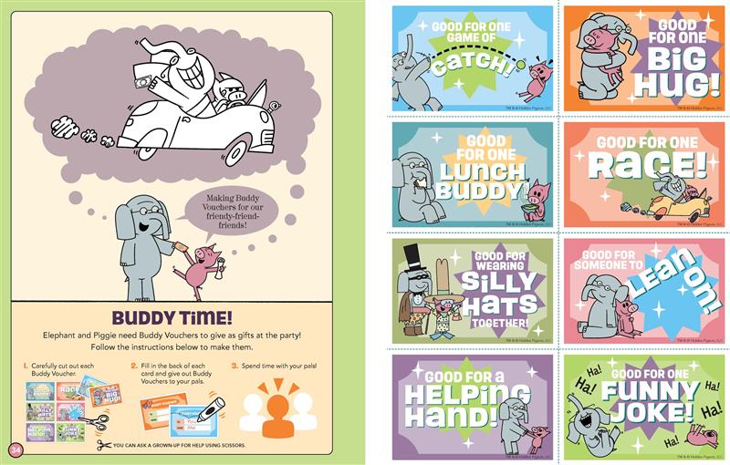 Best friends Elephant and Piggie host an action-packed activity book as they prepare to celebrate pals at the Pal-a-Palooza party. Color and cut out decorations! Create and share gifts! Play games and solve puzzles and mazes! This Pal-a-Palooza party stars Elephant and Piggie with guest appearances from The Pigeon and other Mo Willems favorite friends—ideal for Valentine’s Day crafts and activities and year-round friendship fun. Includes 32 pop-out friendship cards.