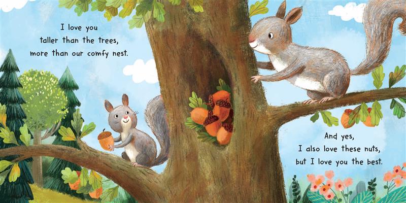 Prenez votre tout-petit et blottissez-vous contre lui tandis que les aigles, les écureuils, les baleines et bien d'autres décrivent un amour plus grand que le ciel, plus haut que les arbres et plus large que la mer.