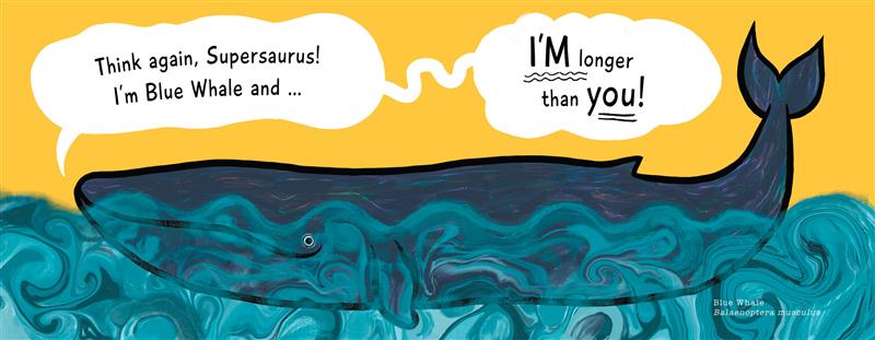 When Supersaurus claims to be the longest animal, Blue Whale begs to differ. The two animals debate who is longer until Inchworm (who happens to be exactly one inch long) enters the scene and offers to measure them both. The animals agree and decide the loser will treat the winner to lunch. Inchworm inches along the entire length of Blue Whale, who measures 1300 inches long. But the measuring took so long that Inchworm has no time to measure Supersaurus. Luckily, Centipede (who happens to be exactly one centimeter long) offers to measure all 3302 centimeters of Supersaurus. Great! Except centimeters are different units of measurement from inches. Will the two ever figure out who won?