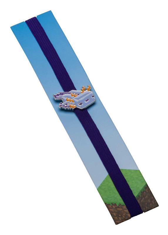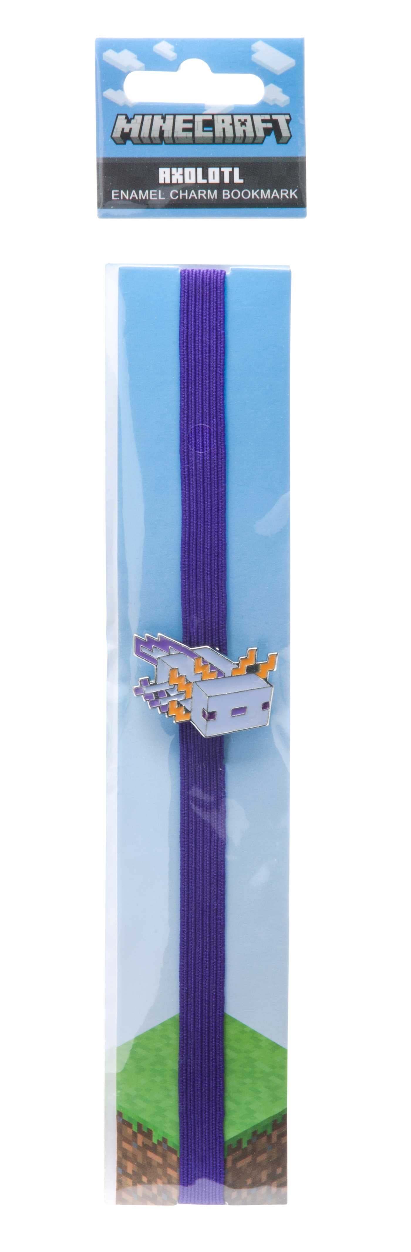 Let helpful Axolotl mob mark your page in you next reading or writing adventure with this officially licensed MINECRAFT Axolotl bookmark with enamel charm and elastic band.