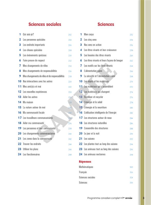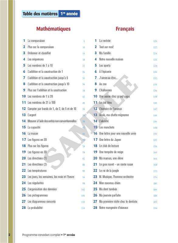 Programme canadien complet est une série de cahiers d'exercices destinés aux écoles d'immersion française. Chaque titre de cette série aborde les quatre matières principales : les mathématiques, le français, les sciences sociales et les sciences. Les unités basées sur le programme sont conçues pour que les enfants comprennent les concepts et maîtrisent les compétences nécessaires. Grâce aux illustrations expressives et aux activités intéressantes, les enfants trouveront que travailler avec Programme canadien complet est à la fois amusant et enrichissant.