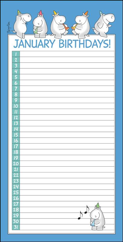 N'oubliez plus jamais l'anniversaire de votre oncle Stu, celui de grand-mère et de grand-père, ou le jour où votre soutien émotionnel, Gila Monster (Fluffy), vous a touché. Ce calendrier mural perpétuel de la dessinatrice et auteure pour enfants Sandra Boynton vous aidera à vous en souvenir.