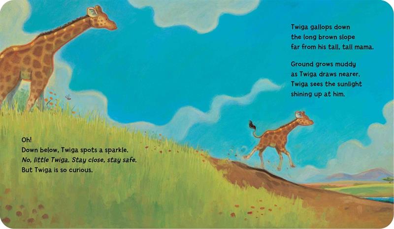 Dans ce vaste monde lumineux, il y a tant à voir, et Twiga est curieuse. Mais la grande maman de Twiga veut que son bébé reste près d'elle, à l'abri des dangers qui se cachent près de chaque odeur irrésistible et de chaque spectacle étincelant que Twiga découvre.