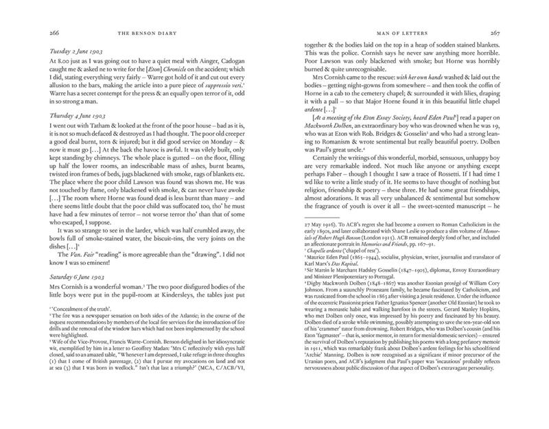 A. C. Benson (1862-1925), novelist, poet (he wrote Land of Hope and Glory), educationalist and Master of Magdalene College, Cambridge, kept a voluminous diary for most of his life. Considered too controversial at the time, it was sealed up after his death. Only now, with the publication of this extensive selection, can his witty and acute judgements on people, institutions and issues – including Henry James, Thomas Hardy, Queen Victoria, Dean Inge, Balfour, Asquith, Eton and Cambridge – be fully appreciated. He paints an endlessly fascinating and often very funny picture of a public life at the heart of the Edwardian literary, educational, church and political establishments; but also of a private life riven by the pressures of unconsummated romantic attachments to young men, and by attacks of appalling depression, an illness then barely understood.