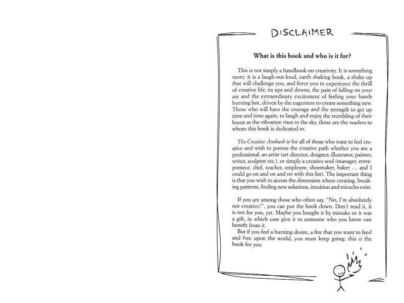 What is an ambush? An ambush is a wake-up call. When you least expect it, you'll turn the page and bam! A small jolt, a trip-up, a way to keep you on your toes and make you confront your limits, pushing you to delve deeper into creative life.