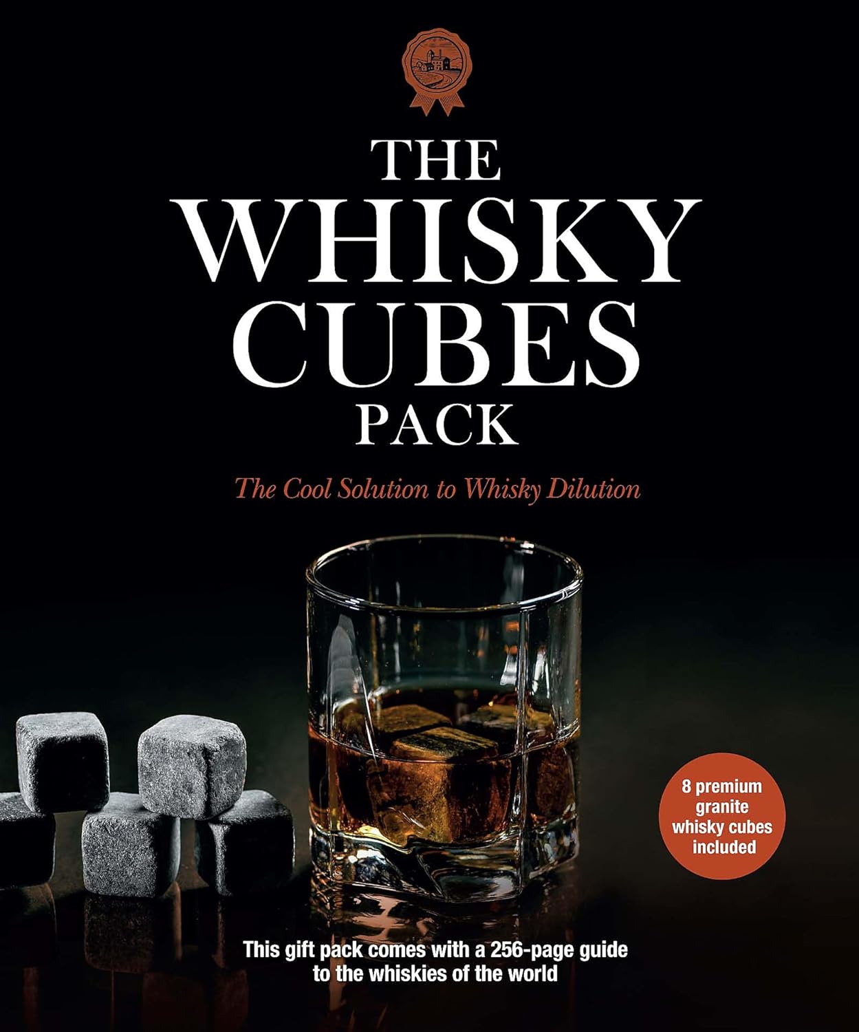 Le pack de cubes de whisky est le cadeau idéal pour tout amateur de whisky. Le pack contient non seulement un livre informant l'amateur de whisky sur des centaines de marques et de distillateurs de whisky en Grande-Bretagne, en Irlande et en Amérique du Nord, mais aussi un guide du processus de distillation et des notes de dégustation. En plus de cela, le pack contient huit cubes de stéatite qui peuvent être placés dans un congélateur et déposés dans un verre et utilisés comme substitut à la glace, ce qui ne dilue pas le liquide doré.
