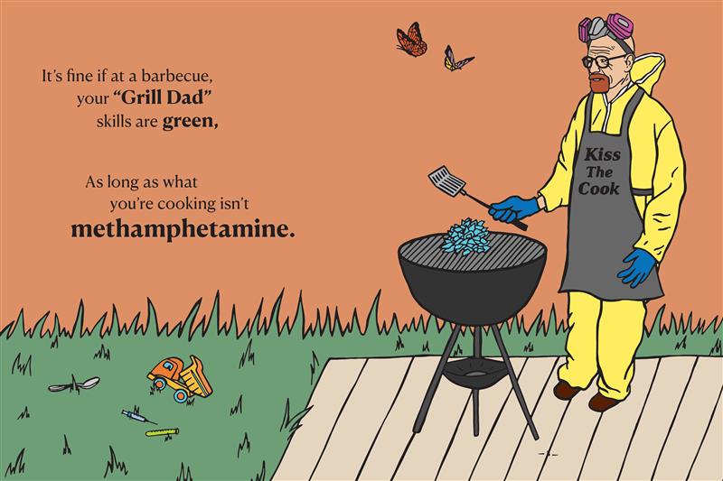Following up on the success of Glenn Boozan’s viral gift book, There Are Moms Way Worse Than You: Irrefutable Proof that You Are Indeed a Fantastic Parent, the dad’s companion book sets out to prove to dads all over the world that, however bad they think they are at parenting, there are dads way worse. While Moms Way Worse highlighted creatures across the animal kingdom who are terrible at parenting, Dads Way Worse showcases fictional dads (and their parenting failures) across history and in popular culture. What dad would think he’s doing poorly when compared to Jack from The Shining, Tywin Lannister from Game of Thrones, or…Walter White from Breaking Bad?:It’s fine if at a barbecue, your “Grill Dad” skills are green