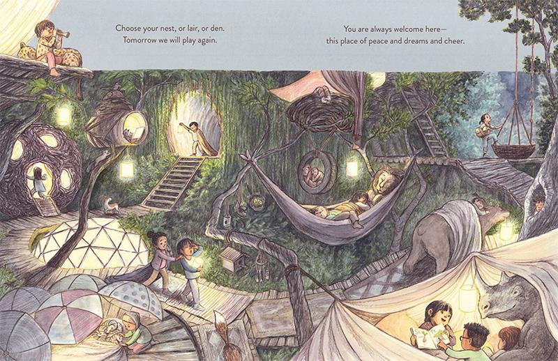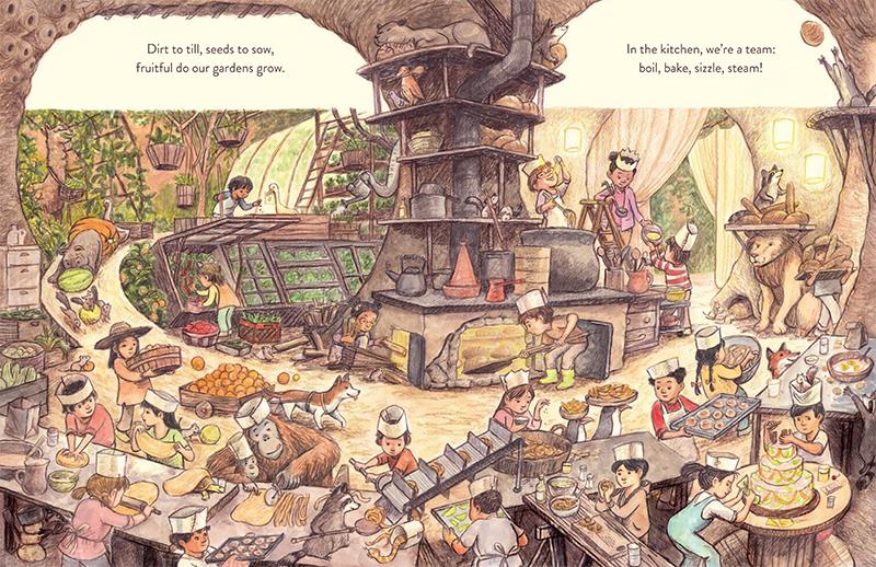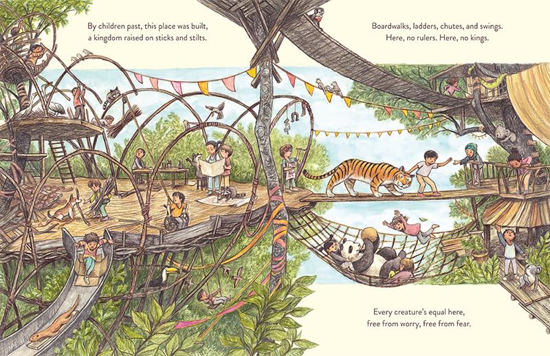 Avec des vers ludiques de Gideon Sterer et des illustrations finement détaillées de Charlie Mylie qui offrent quelque chose de nouveau à repérer à chaque lecture, Treehouse Town célèbre le travail d'équipe, l'inclusion et les possibilités illimitées.