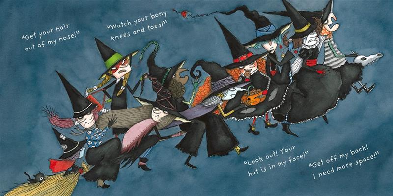 So begins this witchy counting story. Counting up from 1 to 10 and back down again, ten witches jump on a broom--and then fall off one by one! Written in pitch-perfect rhyme, and full of fun read-aloud energy that will have kids memorizing lines and clamoring to read the book again and again, this book hits the mash-up sweet spot between an important concept and Halloween fun!