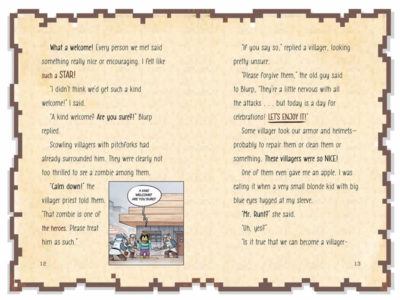 After their fight with the Ender dragon and the loss of their valiant companion Alberic, Runt and his troop of friends are exhausted. Luckily, villagers are waiting for them as they leave the End to welcome them as heroes! They will finally be able to take a little well-deserved rest around the great banquet organized in their honor . . . Right?