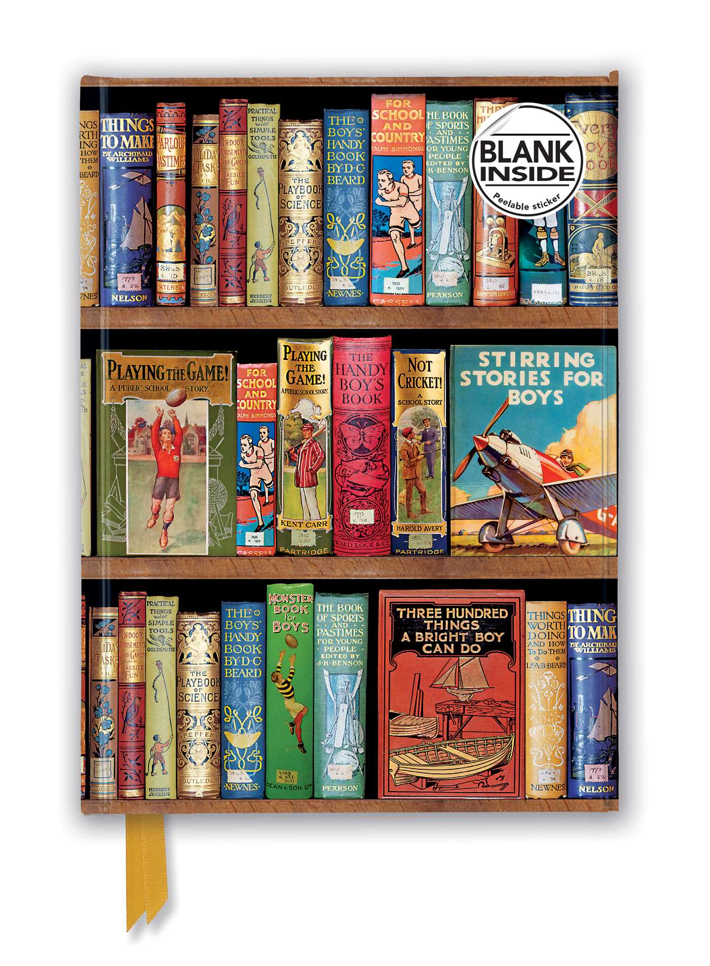 THE ART. Late 19th- and early 20th-century books on the topics of a variety of hobbies and pastimes are the subjects of this print from the Bodleian Libraries. Richly illustrated covers adorn the rows of shelves, featuring titles such as Playing the Game! A Public School Story, Stirring Stories for Boys and For School and Country.