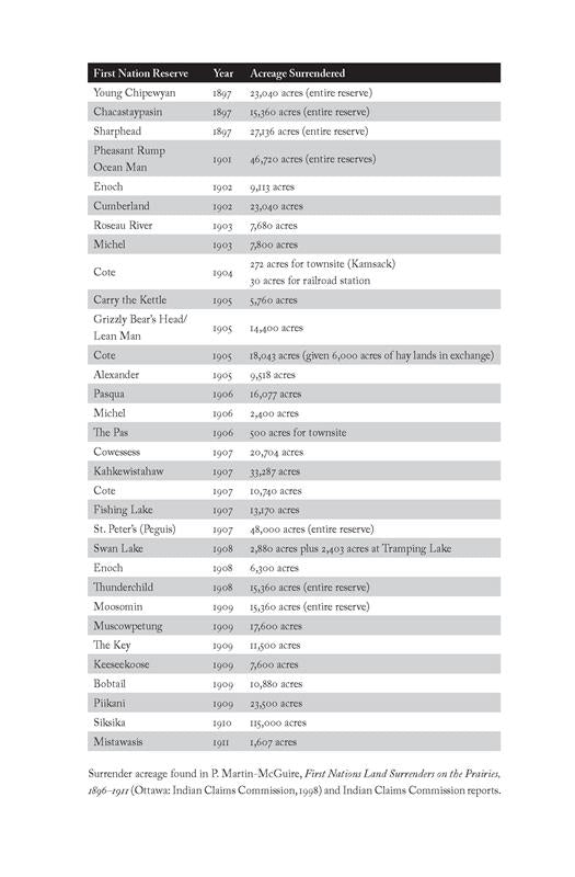 You won’t find the Ocean Man and Pheasant Rump reserves on a map of southeastern Saskatchewan. In 1901, the two Nakoda bands reluctantly surrendered the 70 square miles granted to them under treaty. It’s just one of more than two dozen surrenders aggressively pursued by the Laurier Liberal government over a fifteen-year period. One in five acres was taken from First Nations.