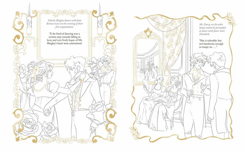 Whether it’s the sentimental moments between Elizabeth and Darcy or the hilarious antics of Mrs. Bennet, relive all your favorite moments from Pride and Prejudice with this gorgeous coloring book. Featuring 50+ coloring pages of all your favorite characters, scenes, and excerpts from the book!