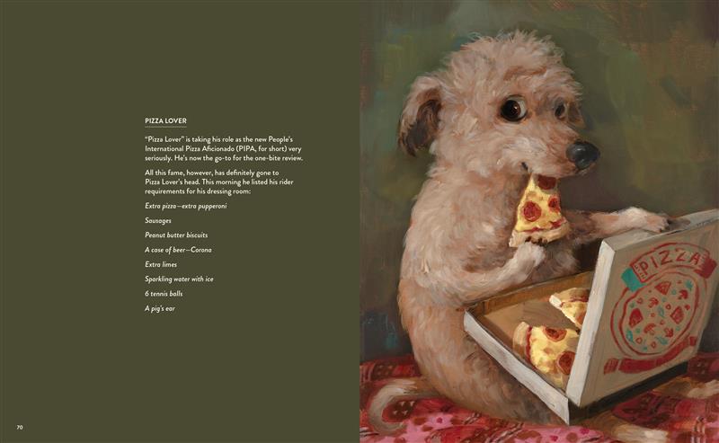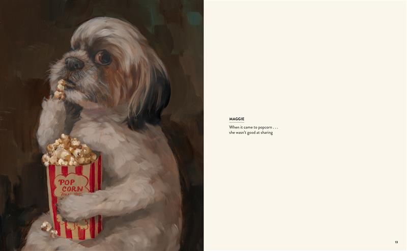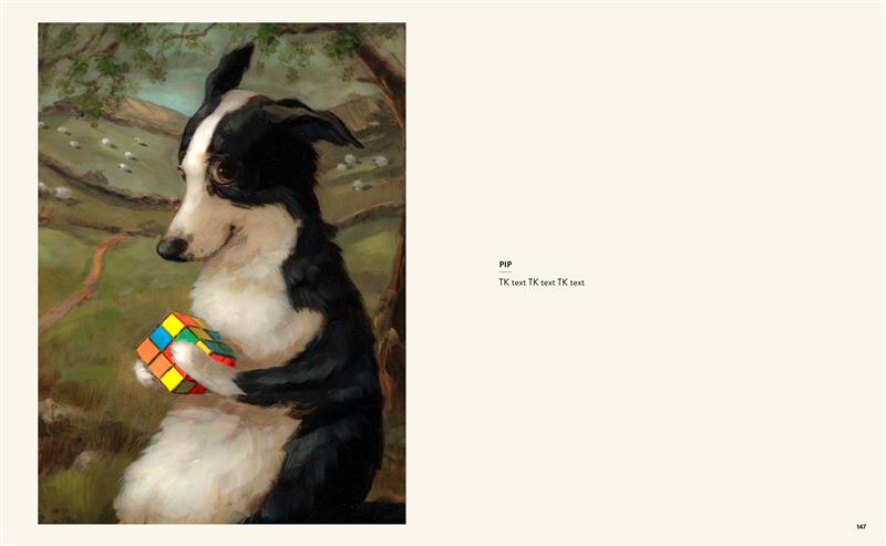 Welcome to Alison Friend’s world of dogs, a singular and very special place created by an artist with a unique gift for depicting that ineffable thing we call “character”—dog characters, actually—using oil paint, empathy, techniques of the Old Masters, and an imagination like no other. With their big expressive eyes and Mona Lisa smiles, charming habits and childlike pleasures, the subjects of these portraits seem all too human yet fantastically doglike.