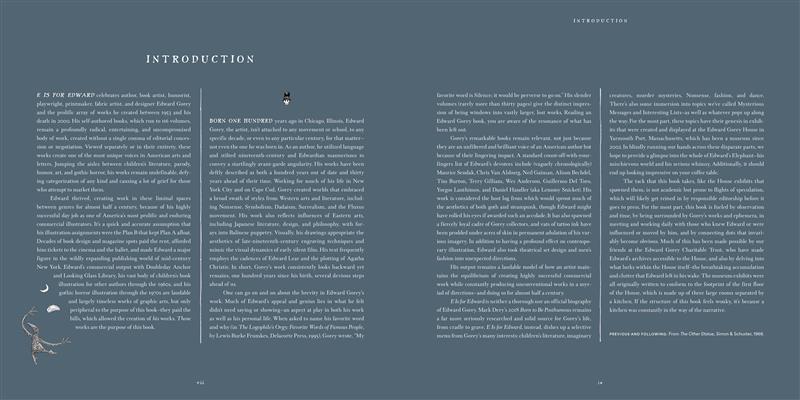 Illustrated with hundreds of original pieces of art and archival material, E Is for Edward is a must-have for every fan and the most comprehensive, in-depth exploration of Gorey's art in more than a decade.