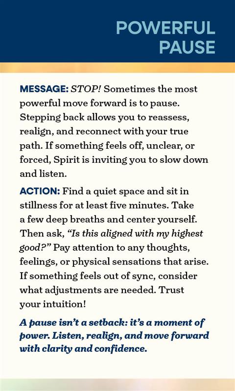 - 52 full-color oracle cards. These thoughtful cards (3" x 5") each share a message of assurance and an action to guide your next steps, empowering you to navigate life with direction from Spirit, Source, and Self.