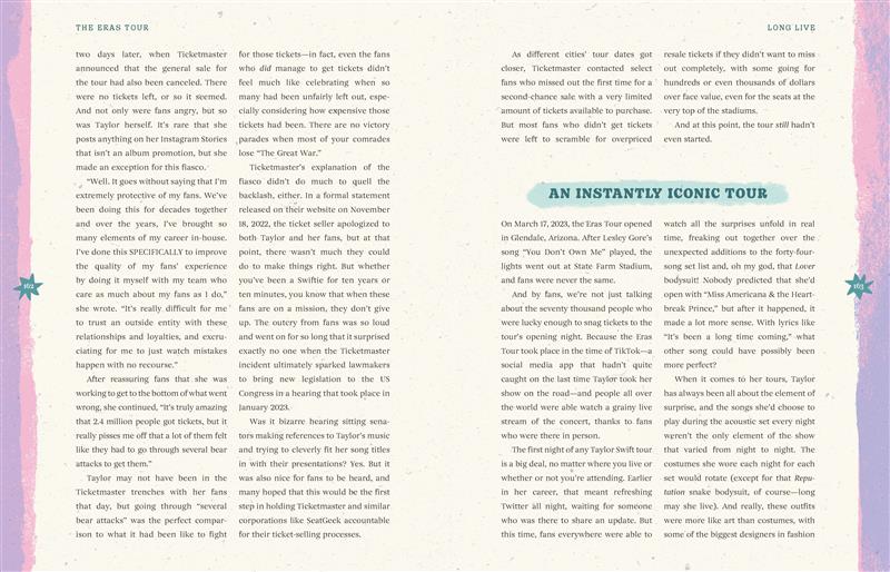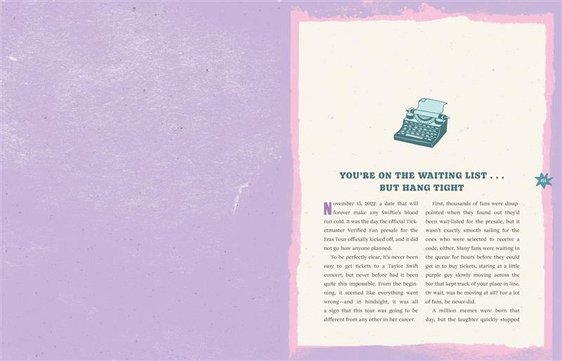 - Have fun looking back on concert traditions and inside jokes, roll your eyes at the most embarrassing clowning moments, take in era-specific Swiftie style lessons, read exclusive stories of fan encounters and author Nicole Pomarico’s own experiences meeting Taylor Swift and her parents.