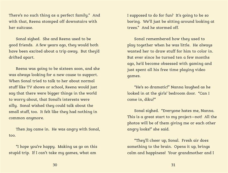 Sonal needs to take a great family picture for her school photography project, but it’s impossible to get everyone together! Luckily they’re heading off on a family camping trip, which should provide lots of great photo opportunities. Not.