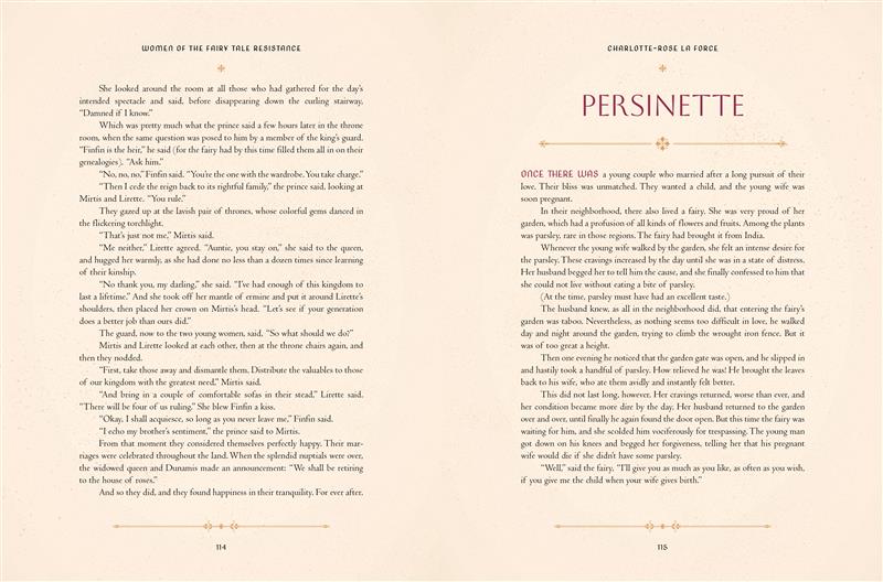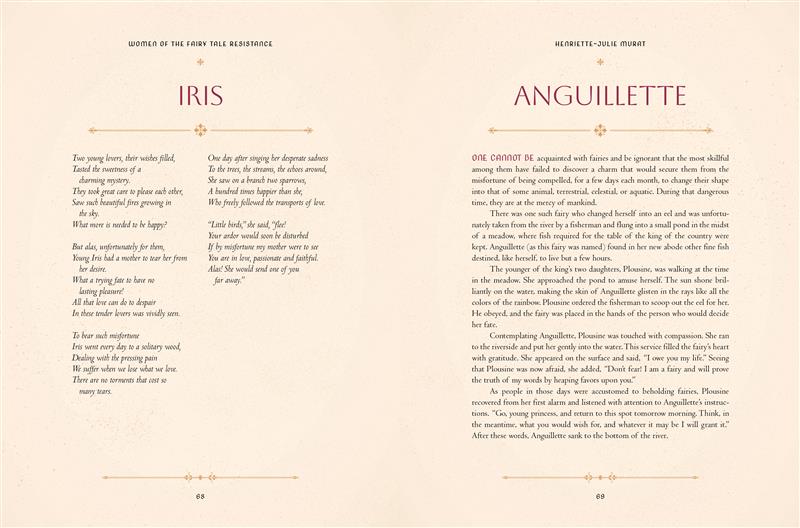 Women of the Fairytale Resistance uncovers seven of these writer’s biographies—which are just as compelling as their fairy tales—and retells 12 of their original stories. The women were mostly young noblewomen who were forced into undesirable marriages and did not have the freedom to give their opinions, travel, or choose who they wanted to love. They used their stories as a way of subtly complaining about their husbands and critiquing the oppressive reign of King Louis XIV. The female-empowering, gender-bending tales combine themes like romance, fantasy, escapism, and their protagonists control of their own destiny—something the writers deeply desired in their own lives.