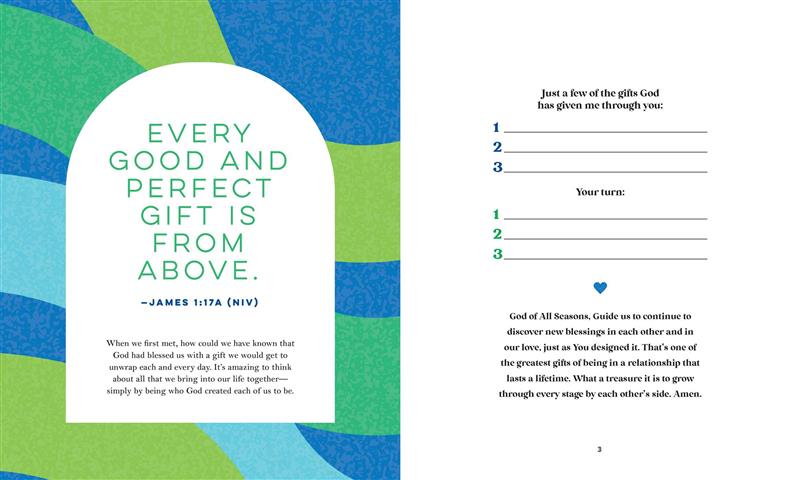 “I love this journal! It’s a beautiful way to slow down and connect with God and your spouse.” —Leslie Means, founder of Her View From Home and bestselling author of So God Made a Mother and So God Made a Grandma