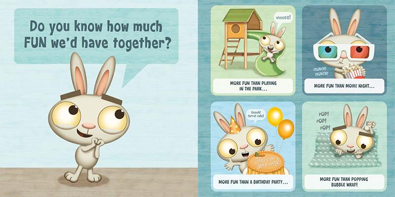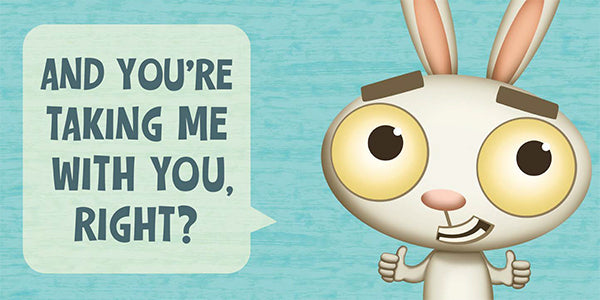 You did it! Off you go! You’re on your way! And you’re taking me with you…right? A bunny bursting with excitement wants you to know it's your biggest fan, it's been cheering for you every step of the way, and you’d better bring it along wherever life leads you next. After all, you'd have so much fun together—more fun than a birthday party! And you'd make a super strong team—stronger than duct tape! So it deserves to come with you. But wait...where exactly are we going?